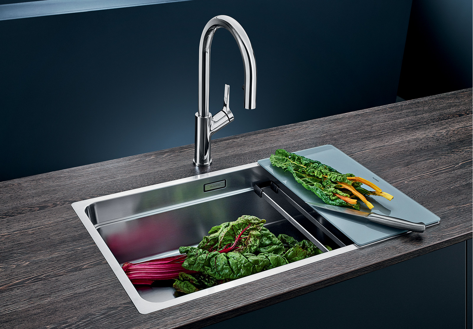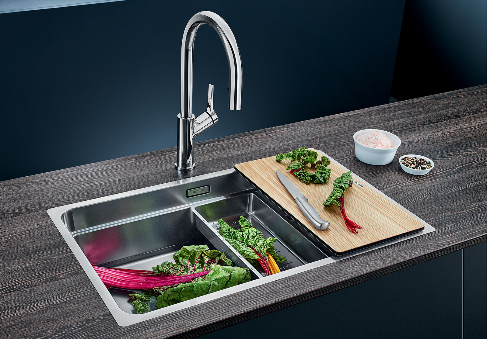 • Вместительная ступенчатая мойка с функциональностью моечного центра