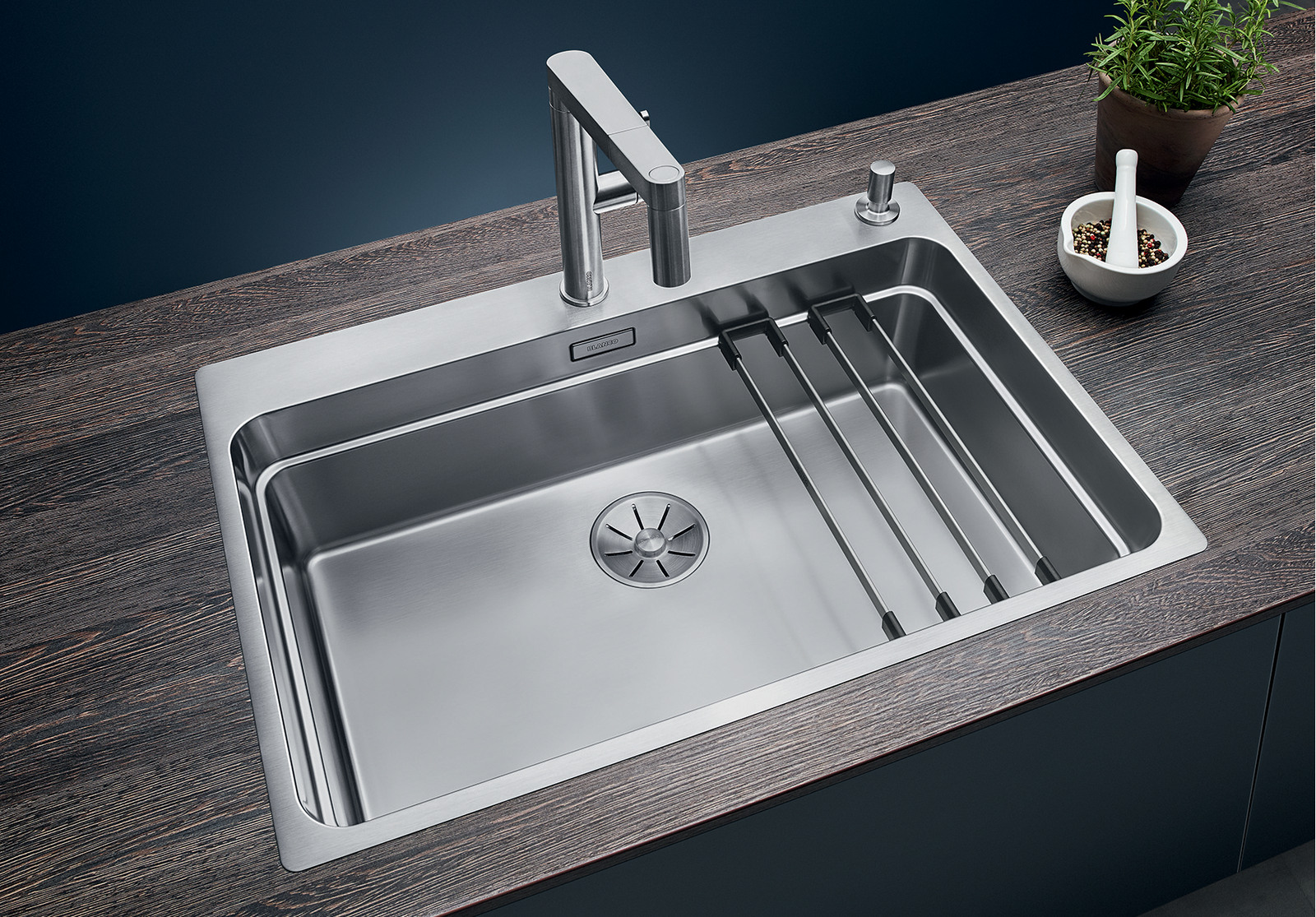 • Вместительная ступенчатая мойка с функциональностью моечного центра