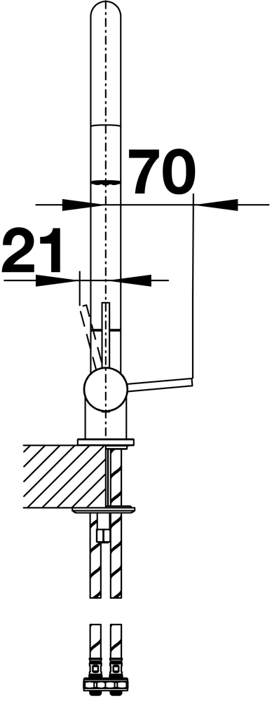 - Гибкие соединительные шланги длиной 450 мм и гайкой 3/8 "для особенно простой и безопасной установки